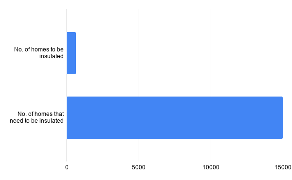 The enormous gap between what is needed and what they are prepared to do in retrofitting homes is as stark as their plans for school buildings. Last week they announced that they would retrofit less than a twentieth of what is needed by 2030. Today they announced plans for retrofitting just 650,000 houses out of the 15 million that need doing. That looks like this.
