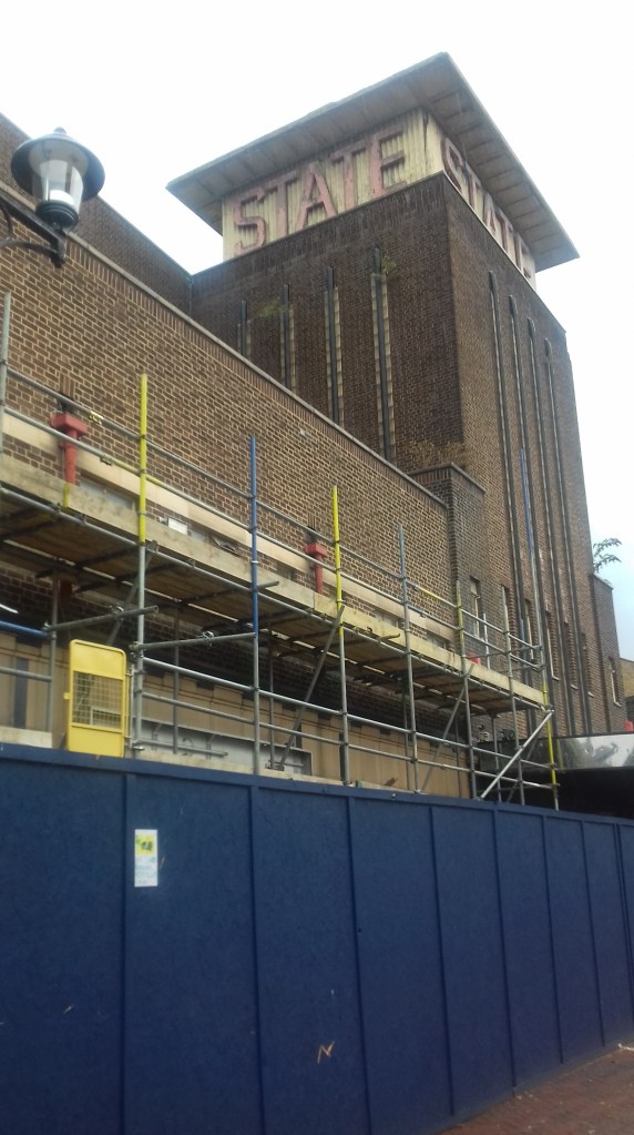 Looming over the heart of my home town, and haunting it like a reproach, is a huge presence that is simultaneously an absence. The State cinema in Grays Essex, a great cathedral of a place, opened in 1938 with seating for 2,200 people, complete with a mighty organ capable of rising colourfully from the orchestra pit like Vincent Price from the grave, has been kept in Grade 2 listed mothballs since 1988, with the paint slowly fading and the buddleia slowly growing, a giant amphitheatre for pigeon poo; having been finally killed off by the opening of a multi screen at Lakeside and the rise of VHS rental: which also left the adjacent High Street as a by passed ghost of its former self at the same time.