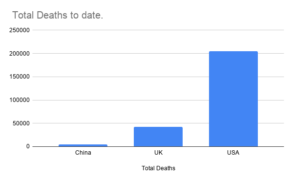 Half hearted lockdowns and premature attempts to “save the economy” in the UK and USA have led to a far higher level of deaths than in China. China carried out a massive social mobilisation and strict lockdown, which eliminated domestic infections within six weeks. Subsequent infections have come from people coming in from outside; and these too have been dealt with very quickly. The UK and USA, by contrast, have so far had 27 weeks, have failed to eliminate the virus and are now looking at another 27 at least- just to get through the winter and the additional difficulties caused by the overlap of COVID with annual Flu – with no guarantee that a vaccine will bring an end to restrictions.