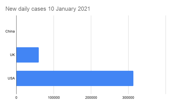 The comparable figures for new cases in the UK and USA were 59,937 and 313,516 respectively, because our governments have not got the virus under control. That looks like this.