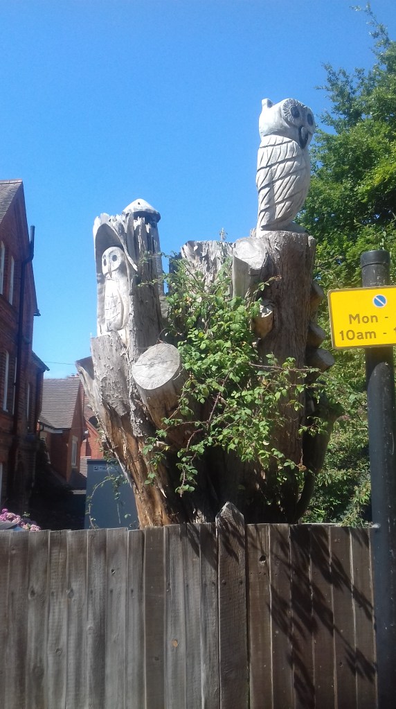 With our feet about to drop off, we decide a bus journey is preferable to a two hour walk along the Riverside path back to Goring. Waiting for a bus in the tiny market square behind a war memorial that looks more pacific than most – topped with a wreathed female figure that could be a goddess of peace, or victory, or both; the two being indivisible in most British remembrance – in front of a courthouse with a memorial plaque to Sir William Blackstone, he of the Common Law Commentaries that are still updated and used in UK and US Law – who presided there in the early Eighteenth Century. Just before the bus arrives, the church clock strikes five. Five clear, single notes with a mellow tone, but audible across the whole town for people who could count up to twelve to be able to work out how late it was. 5 bells and all’s well.