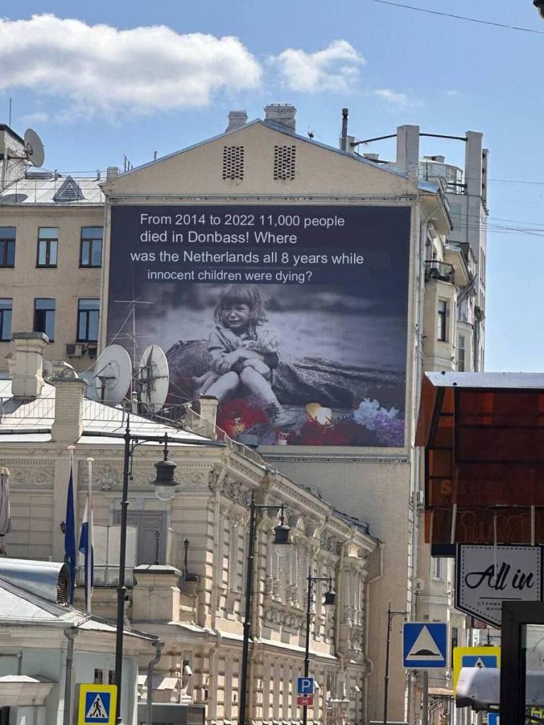 This poster is displayed on the side of the Dutch Embassy in Moscow and shows the number of people killed in the Donbass between 2014 and 2022.If you walk down the Arbat in the same city you will see hundreds of poster sized billboards memorialising the children killed by Ukrainian shelling into the Donbass in that time. If you go to Donetsk City, you will see a memorial garden for these children. That shelling continues dailyeven now.