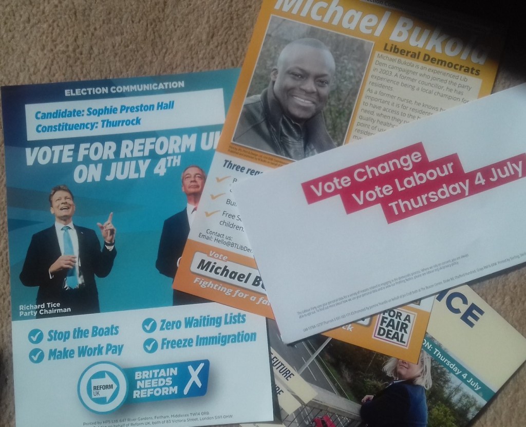 In a constituency somewhere in South Essex, four leaflets plop through the letter box.
