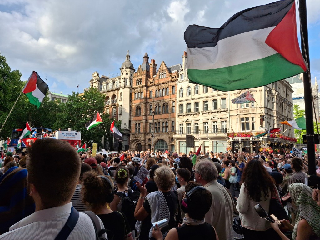 At the pots and pans protest at our government’s complicity in the attempted starvation of 2 million Gaza Palestinians in Whitehall this evening, I was attempting to beat out the rhythm of the Nibelungs in Wagner’s Rheingold – old moles hammering away in their mines– with a saucepan and wooden spoon. This was an effort to create an air of collective subteranean proletarian menace. Needless to say, loud though it was, it did not catch on.